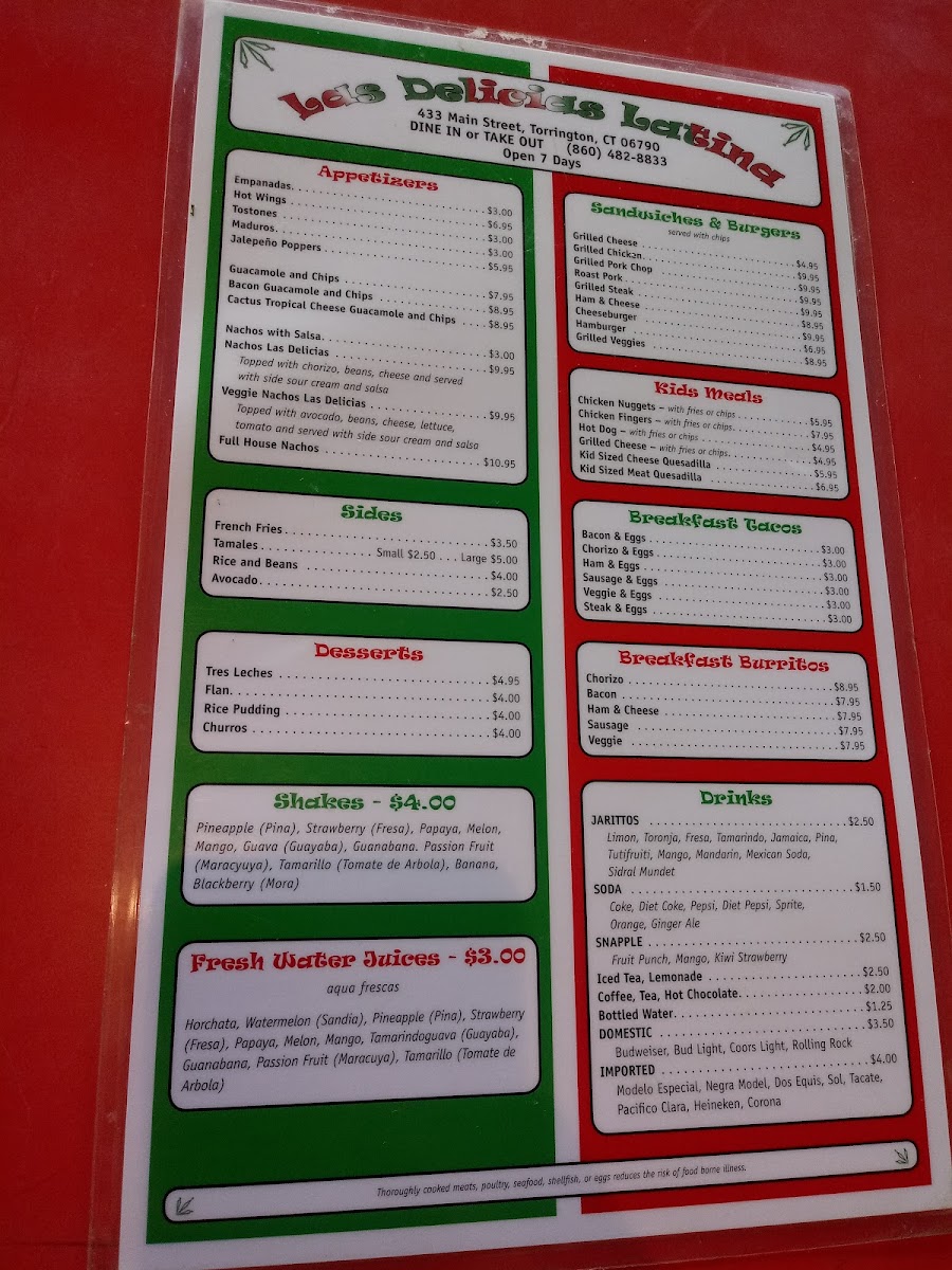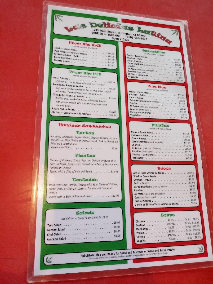 Welcome to Las Delicias Latina, a culinary treasure nestled in the heart of Torrington, CT. Here, you’re invited to dive into a rich tapestry of authentic Latin flavors, with a heavy emphasis on traditional Mexican cuisine. The menu boasts an array of vibrant dishes that will whisk you away to a bustling Mexican kitchen.